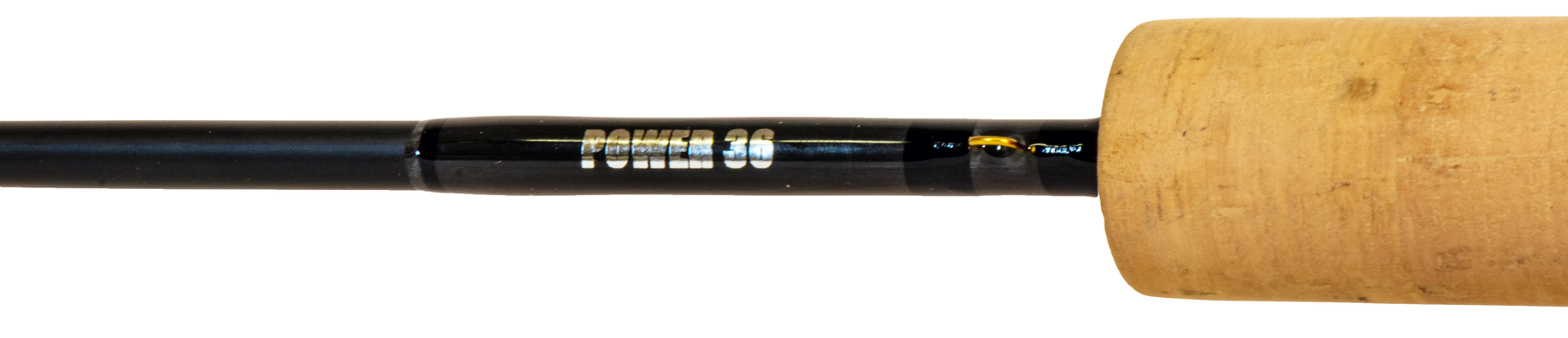 The Power lives up to the name that it bears. Built on a revolutionary blank that features a smooth transition from tip to backbone. This ensures total control over a wide range of lures covering most spoons all the way up to medium sized minnow profile baits, such as #5 Rippn Raps. The Power is designed with enough "Power" to land your next trophy walleye and enough sensitivity to detect even the lightest cold front bites. Featuring stunning Gold REC Recoil Ice guides and all black wraps. This rod stands out on the ice!